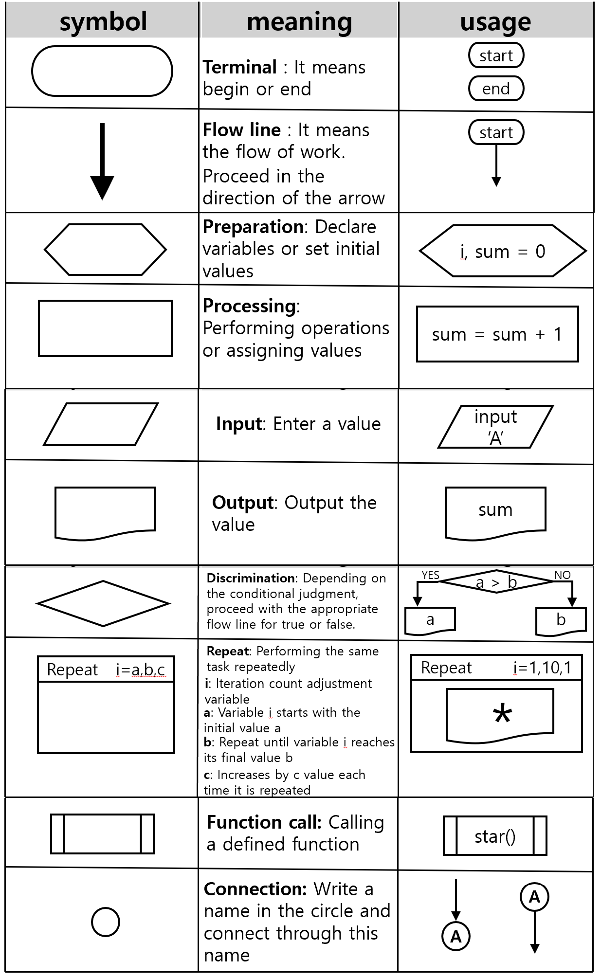 Symbols used in flowcharts