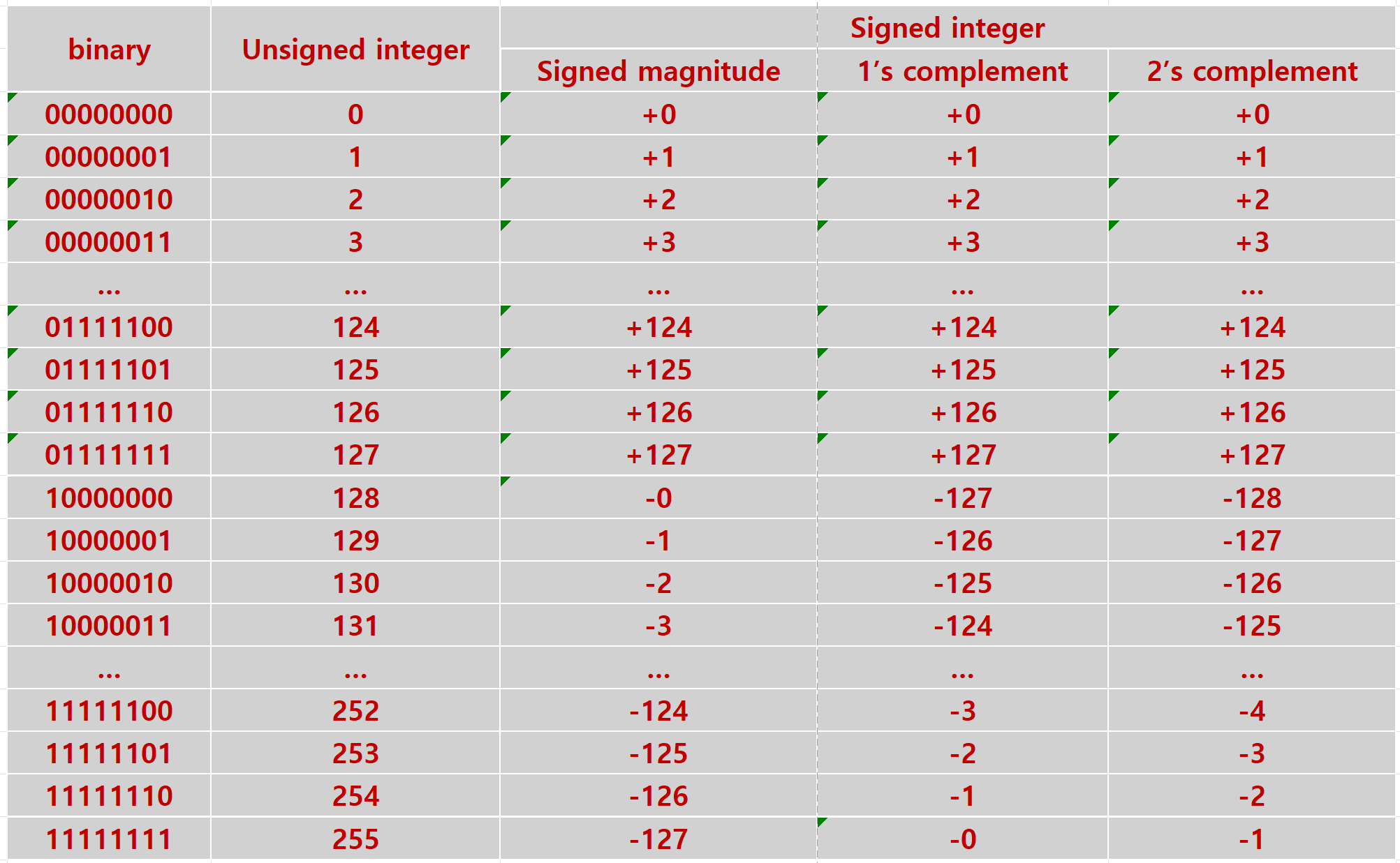 Comparison between number systems